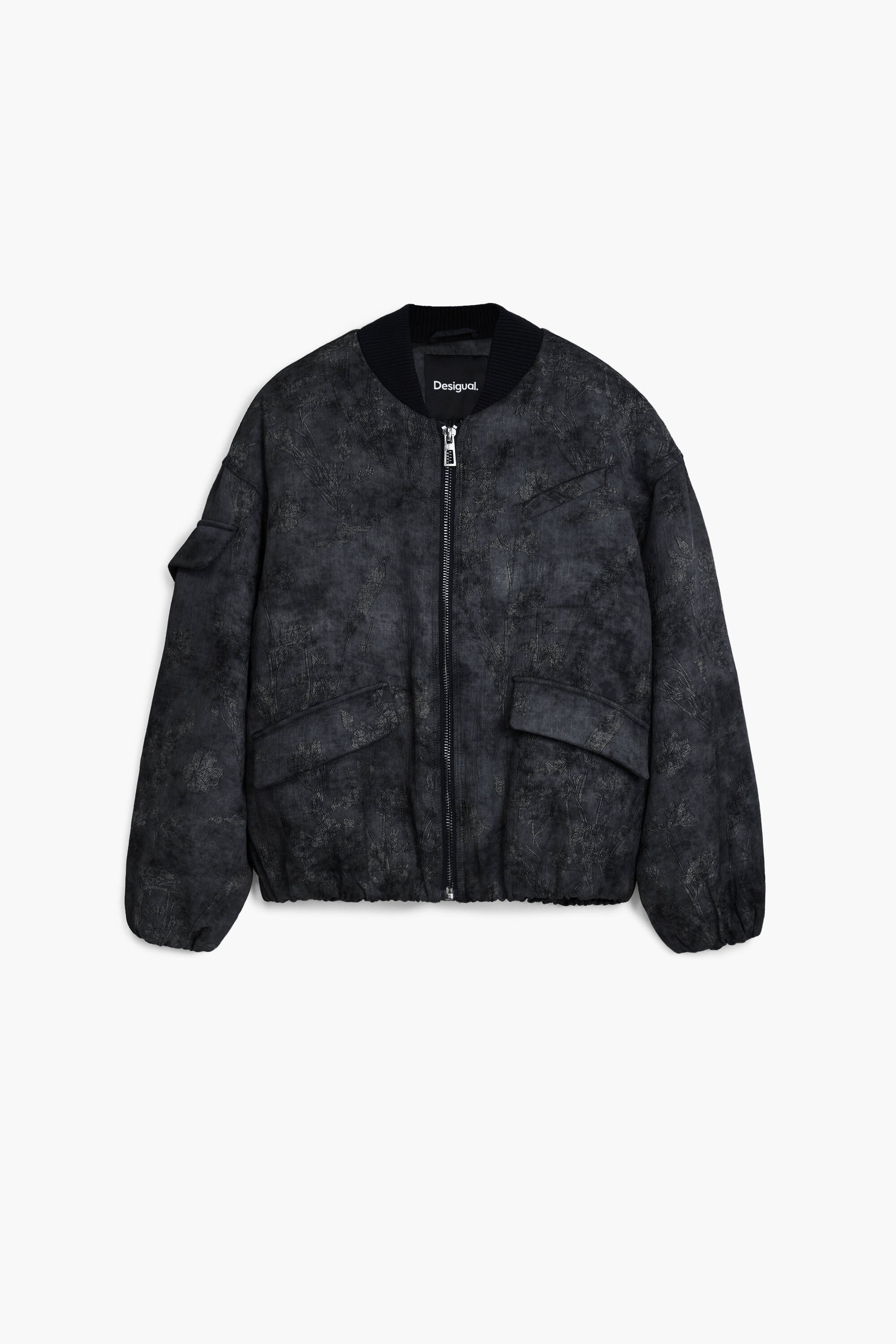 Swirling stitched blooms add enchantment to this sporty bomber fitted with flap pockets.
