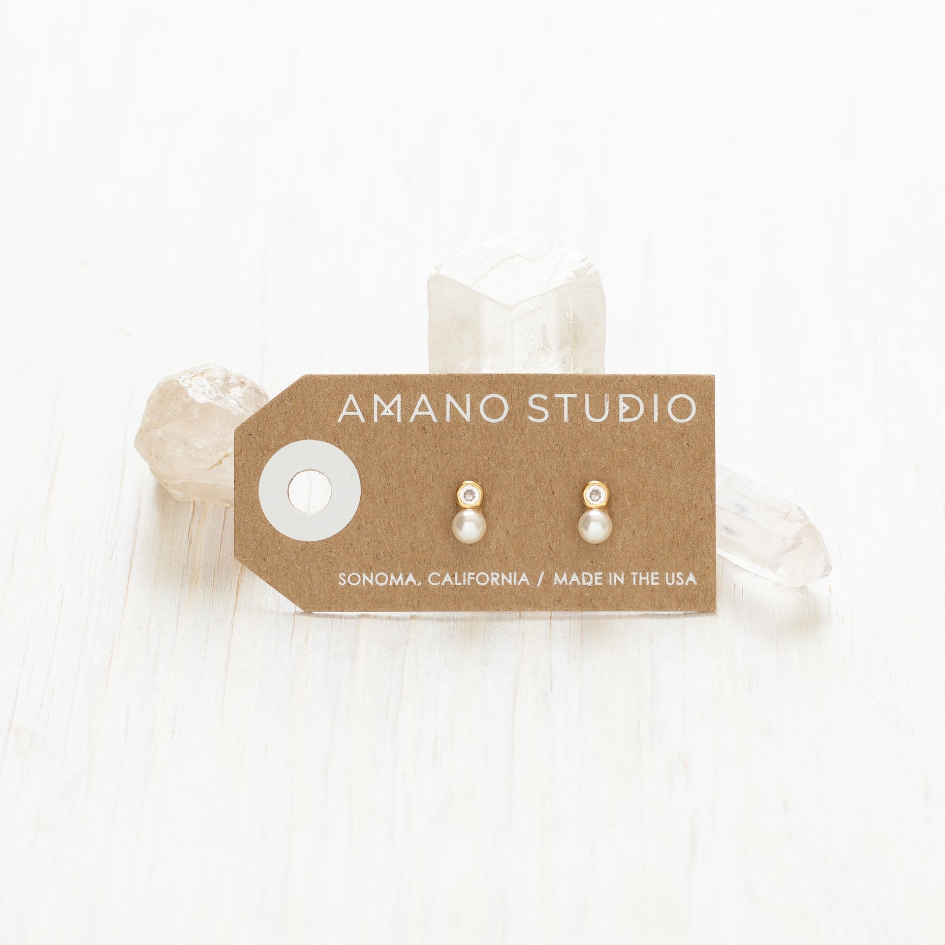 The cutest pair of studs combining two of best selling elements: pearls and crystals. Great for everyday, work and into the evening. 14k gold over brass, Czech crystal, synthetic pearl. Designed in our Sonoma California studio